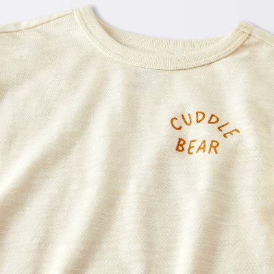 Get your little one ready for a day of small adventures in this 2-Piece T-Shirt & Striped Gauze Set from Cloud Island™. The two-piece outfit set includes a short-sleeve tee with the text ‘Cuddler Bear’ on the front and striped gauze pants with functional side pockets. Crafted from a blend of cotton, recycled cotton, and modal fabric, this outfit set offers breathable all-day comfort. The pants feature an elastic waistband for easy pull-on wear.