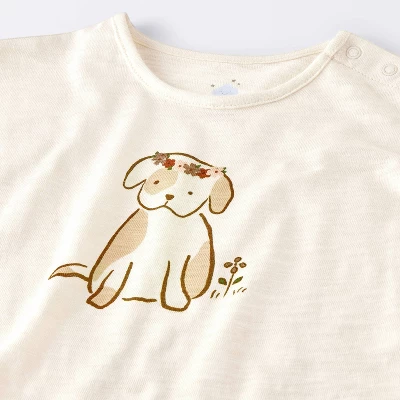 Dress up your baby in adorable style in this 2-Piece Dog Floral Leggings Set from Cloud Island™. The long-sleeve tee is made from a cotton, modal and recycled cotton-blend fabric with a graphic showing a cute sitting dog and features a shoulder snap for ease of dressing. The striped leggings with purl-edge trimming on the ankles are crafted from cotton, recycled polyester, recycled cotton and spandex-blend fabric, and they feature a full elastic waistband for a snug, stay-put fit.