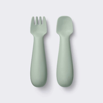 - 2pc baby spoon and fork set in green