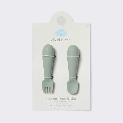 Feed your little one or teach them to eat on their own with the 2-Piece Silicone Spoon and Fork Set from cloud island™. This green silicone spoon and fork set is a must-have addition to your baby’s essentials. BPA-free, this utensil set can be tossed in the dishwasher for easy cleanup, and you can add coordinating suction bowls and bibs to get ready to feed them.